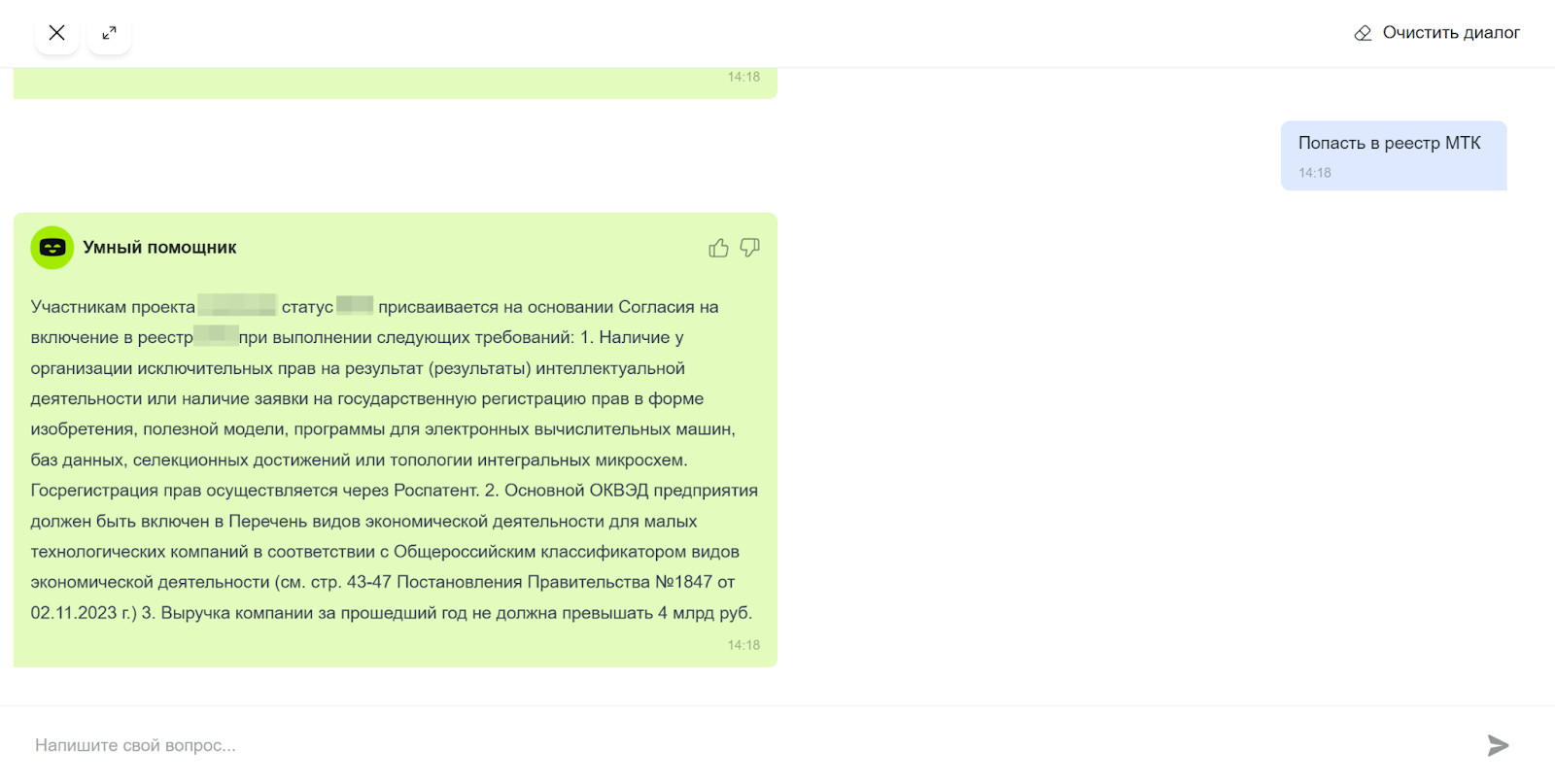 AI-ассистент для сайта и личного кабинета крупного инновационного центра