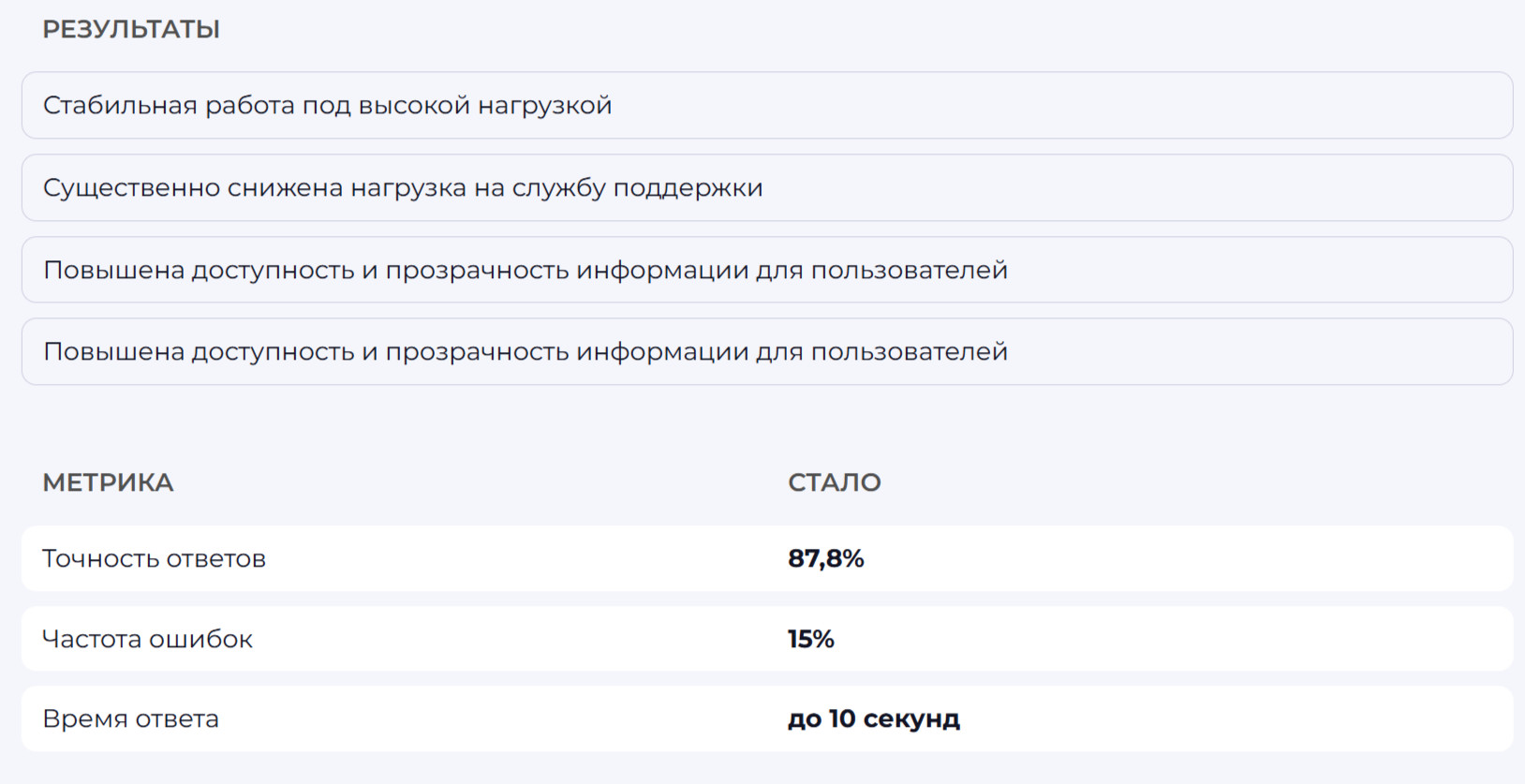 - Автоматизировать обработку типовых запросов и снизить нагрузку на службу поддержки.