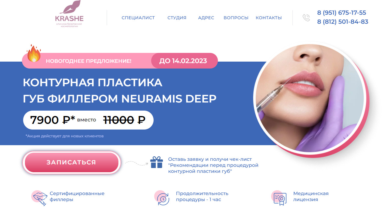 У клиента большой спектр услуг, и в самом начале сотрудничества мы стали продвигать направление контурной пластики (увеличение губ).