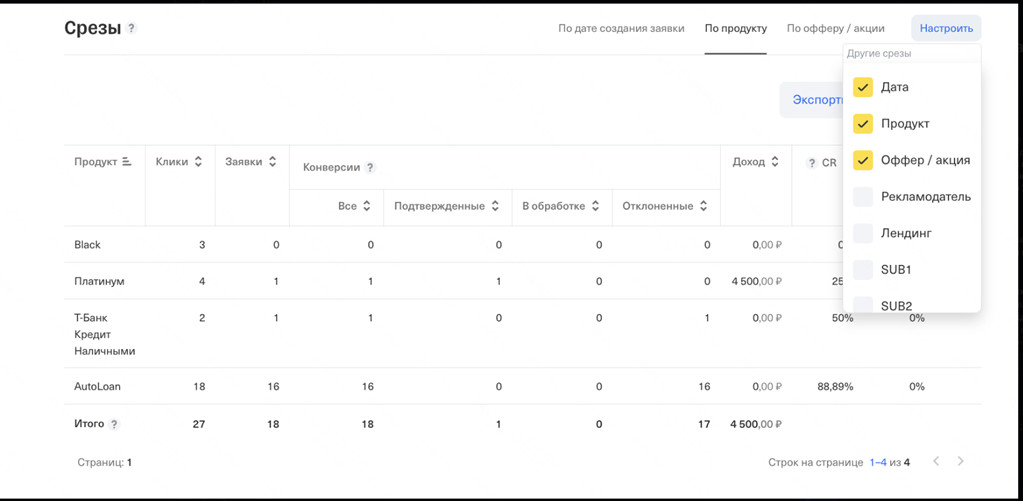 Интерфейс позволяет отслеживать заявки, конверсии и выплаты в реальном времени.