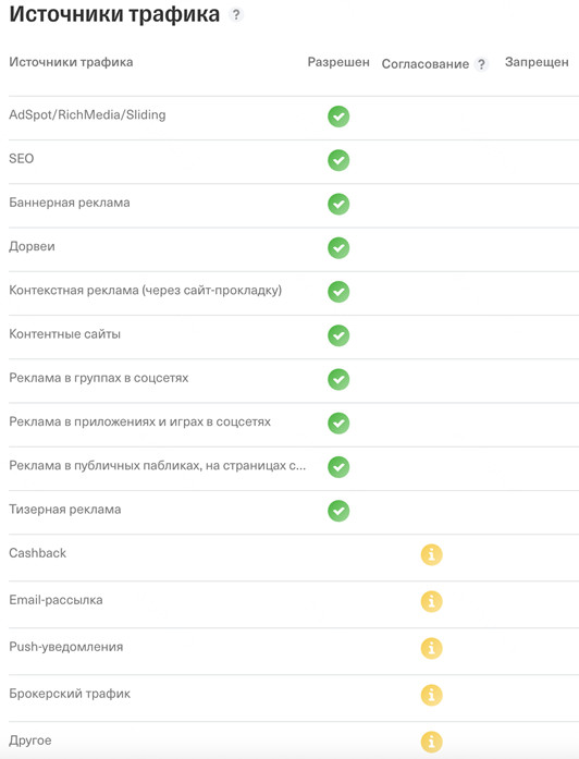 источники. Перед подключением оффера я рекомендую изучить разрешенные