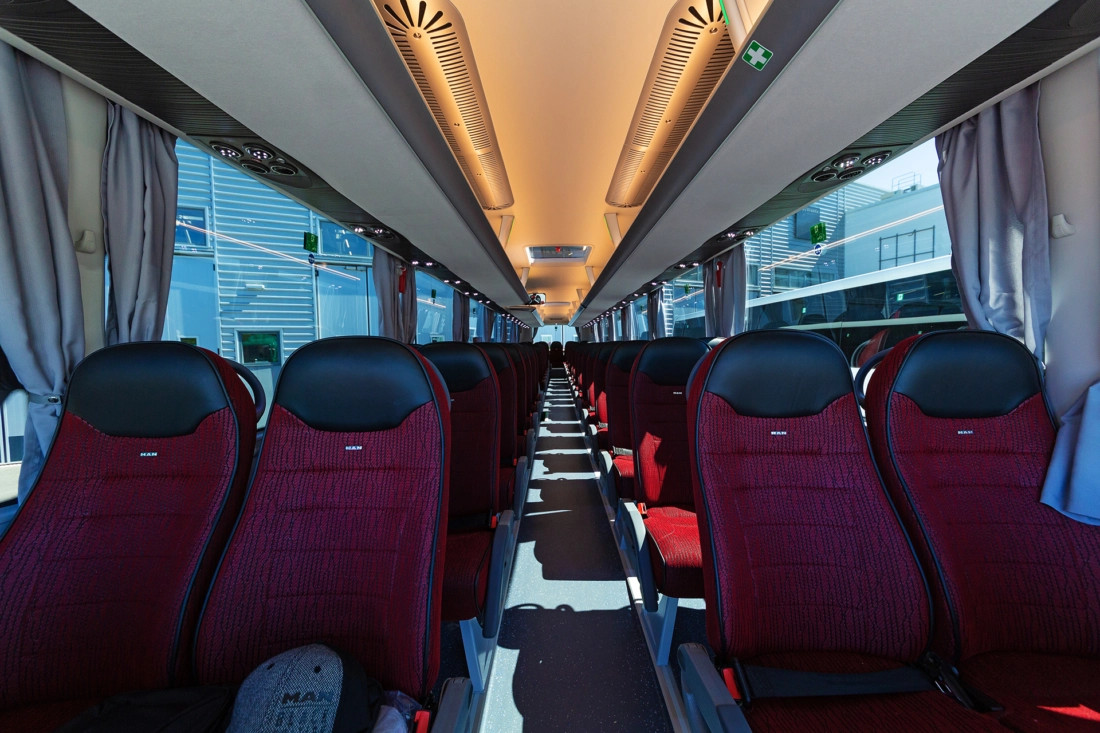 В автопарке ООО «Интерсервис» есть автобусы, рассчитанные на 63 места. Они идеально подходят для транспортировки большого числа сотрудников и позволяют компаниям с многочисленным коллективом сэкономить на аренде дополнительных автобусов, потребность в которой может возникнуть из-за нескольких сотрудников.