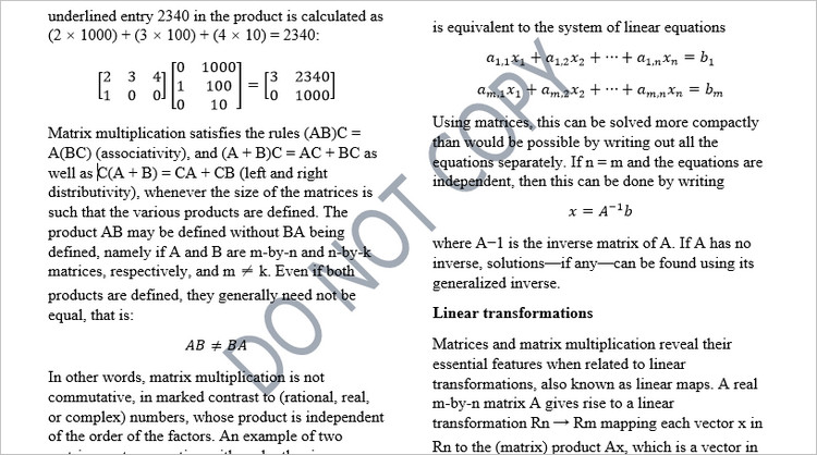 Используя класс TextWatermark, предоставляемый Spire.Doc, можно создать внешний вид текстового водяного знака, включая текст, размер шрифта, его цвет и расположение. Затем водяной знак можно применить к документу с помощью свойства Document.Watermark.