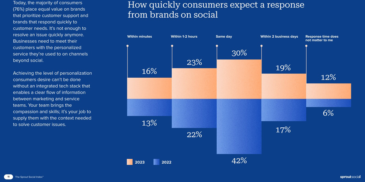 Как быстро потребители ожидают отклика от брендов в соцсетях в 2023 году: