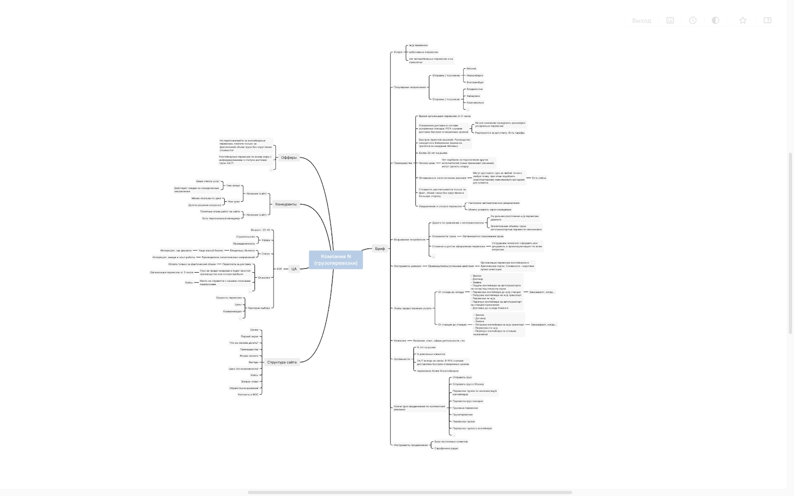 Майнд-карта — это отличный способ для структурирования информации о компании, о конкурентах и целевой аудитории. Простыми словами, это схема, в которой собраны все необходимые данные для построения маркетинговой стратегии.