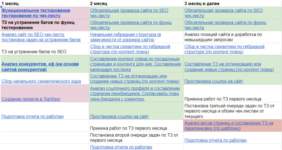 «Продвижение любого сайта начинается с проверки всех функциональных элементов (карточки названия товаров, отображения кнопок, формы...) , анализа конкурентов, внутренней оптимизации и создания календарного плана продвижения разделов сайта.