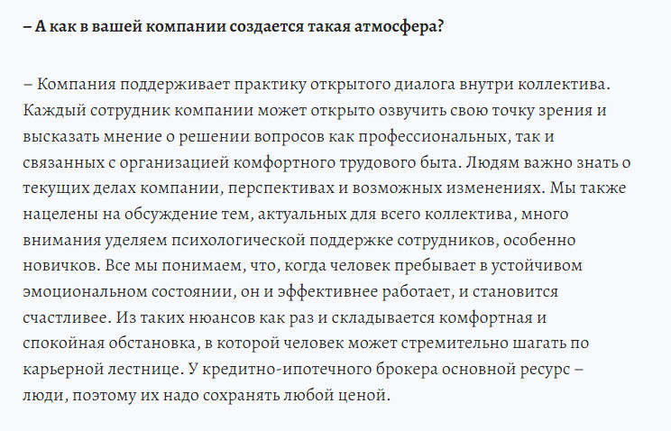 В общем, согласен с тем, что говорит гендиректор, меня заинтересовала не только их зарплата, а также их философия, ориентированная на сотрудника, и возможности карьерного роста, которые они предлагали Вступив в ряды сотрудников Финарди, я был приятно удивлен теплым приемом и поддержкой коллег. Чувствовалось, что руководство компании тоже старается создать комфортные условия для работы, чтобы люди друг с другом не соревновались, а была взаимоподдержка. Я работал в Финарди 2 года (пока не переехал). Уровень сервиса здесь, действительно, высочайший, искренне помогали людям в решении их финансовых вопросов. Поток заявок на кредиты каждый день впечатляет — более 1000 заявок от горячих клиентов. Мои задачи включали проведение консультаций по заявкам на кредиты, назначение встреч, заключение договоров, подбор оптимальной кредитной программы, формирование пакета документов и сопровождение клиента на всех этапах сделки. Этому не сложно обучиться, тем более, когда есть опыт в продажах. Через месяц работы я уже без лишнего стресса проводил все нужные переговоры. Мне нравилось, что у нас есть собственная CRM с постоянными обновлениями и дополнениями. Она помогает эффективно вести клиентскую базу, которая достаточно обширная. В моей ответственности было от 200 до 250 клиентов одновременно, и благодаря CRM я справлялся. Компания предлагает привлекательные условия труда, включая оклад, проценты и премии, которые позволяли мне достойно зарабатывать — я получал 150.000 — 200.000 р. В последние месяцы работы уже до 250.000 р. доходило. Так что нет потолка по верхней планке бонусов и дохода. В общем, мне очень нравилось там работать, график 5/2, все преимущества трудоустройства по ТК РФ, хорошая заработная плата. Компания даже бесплатную мобильную связь предоставляет, постоянное корпоративное обучение и возможность карьерного роста. И офисы находятся всего в 1 минуте ходьбы от метро. Я провел небольшой исследовательский анализ и прочитал о Финарди отзывы работников. Большинство отзывов были положительными, подтверждая мои собственные впечатления. Сотрудники отмечали хороший уровень заработной платы, возможности профессионального роста, и приятную рабочую атмосферу. Компания также была признана одним из лучших работодателей в своей отрасли, и это неудивительно.Мое мнение полностью соответствует положительным отзывам о Финарди. Я благодарен компании за возможность развиваться профессионально и реализовывать свой потенциал. Работа в качестве менеджера по продажам в Финарди не только помогла мне финансово, но и развила мои навыки в области продаж и общения с клиентами. В заключение, я хотел бы сказать, что Финарди — это прекрасное место для работы в кредитной сфере. Компания уделяет внимание своим сотрудникам и создает условия для их развития и успеха. Если вы ищете карьерный рост и стабильность в финансовой отрасли, я рекомендую обратить внимание на Финарди вакансии и взять уроки из моего личного опыта.