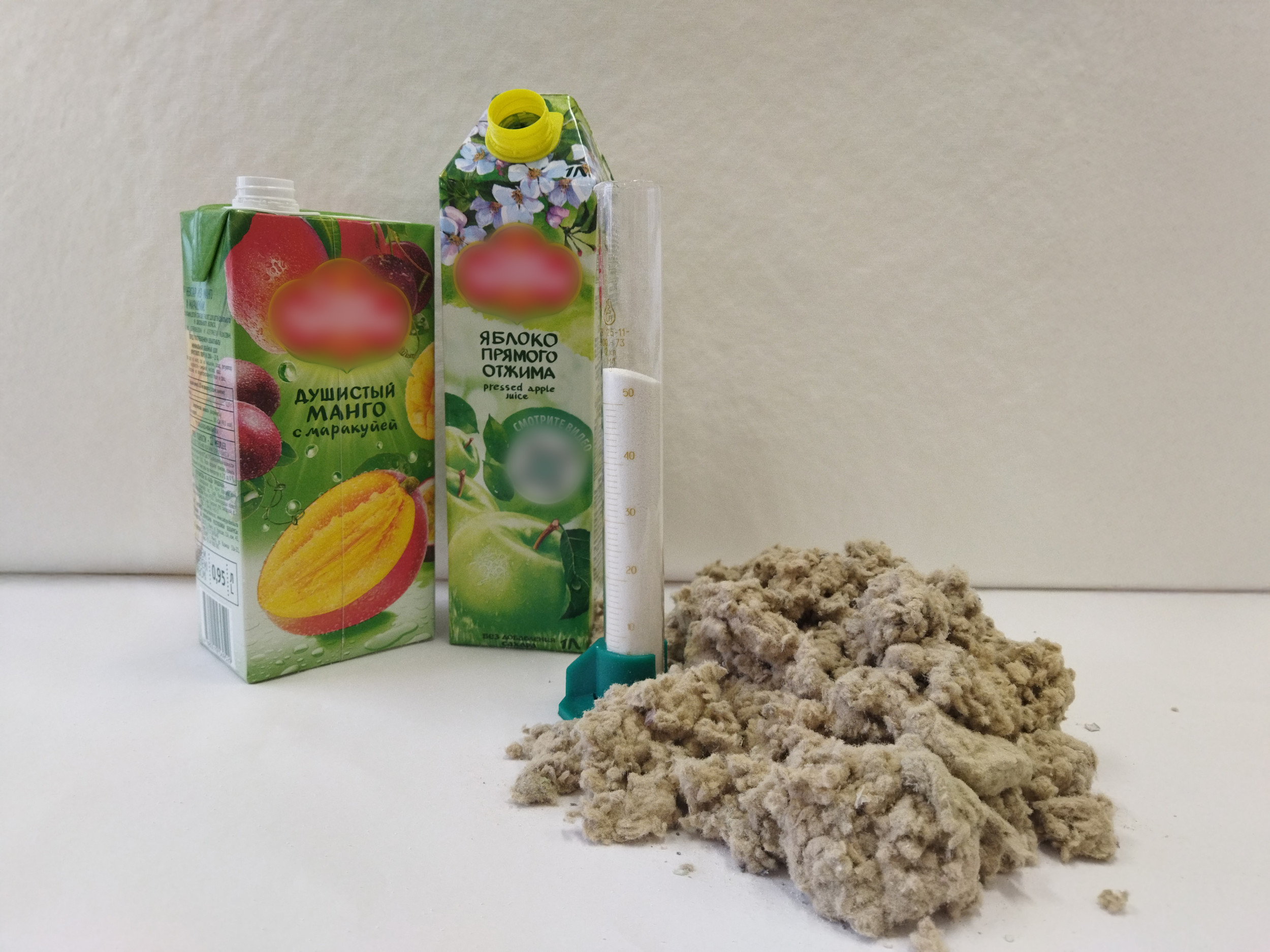 Для исследования политехники использовали волокнистую часть упаковки Тетра-Пак, которую получили сухим разделением в разработанном ранее аппарате аэродинамического действия. С помощью направленного потока воздуха устройство измельчает макулатуру на отдельные волокна, при этом не разрушая их структуру.