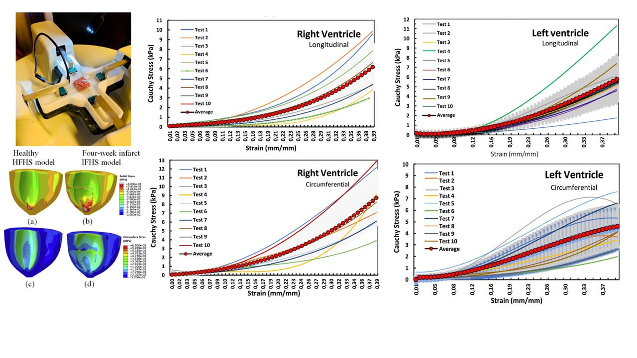 Работа сердца зависит от сложного взаимодействия и сократительной способности разных отделов: двух предсердий, двух желудочков, и сердечных стенок между ними. Для исследования деформационных свойств мягких тканей сердца часто используют образцы, взятые у овец или крупного рогатого скота из-за их анатомического и биомеханического сходства с тканями человека. Однако в основном исследователями проводятся лишь одноосные испытания, то есть ученые рассматривают биомеханическое поведение тканей под нагрузкой лишь в одном направлении, в то время как в реальных физиологических условиях сердце деформируется более сложным образом.