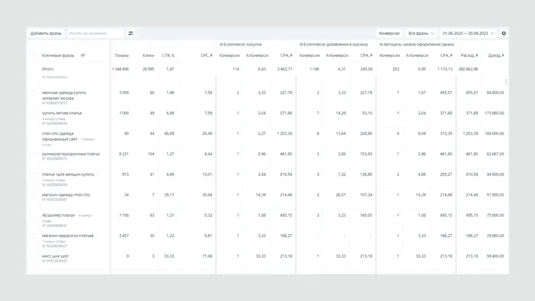 В ходе аудита было выявлено, что доля новых посетителей минимальна, и основное количество заказов идет с аудитории по бренд запросам. А клиенту, конечно, важно, чтобы привлекалась также и холодная, новая аудитория.