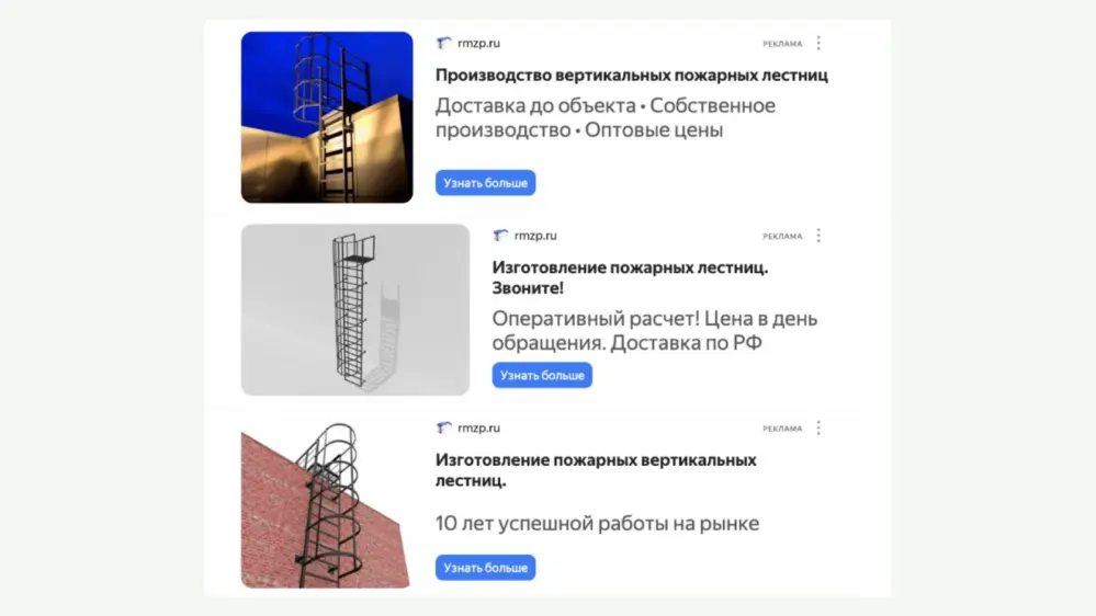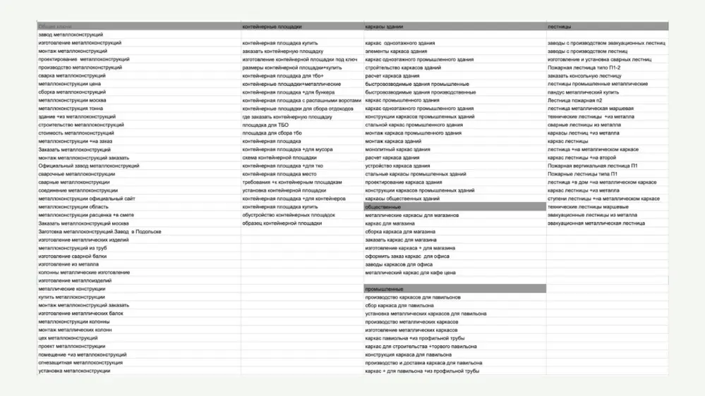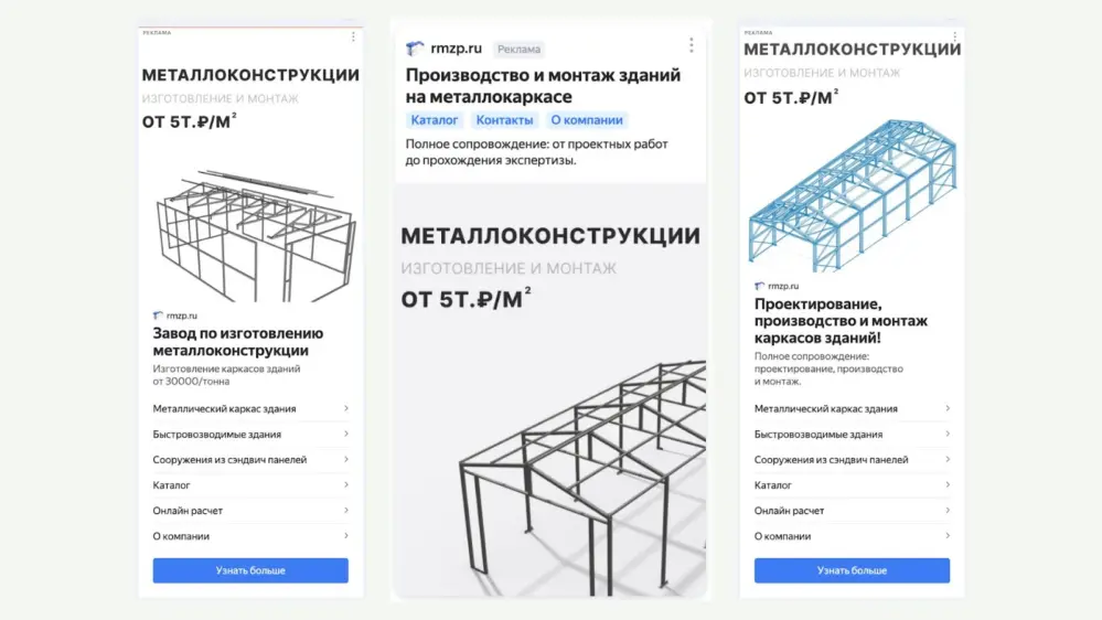 При этом из старых рекламных кампаний была одна функционирующая, но вела она на продажу контейнерных площадок, что является для клиента менее интересным направлением, чем металлоконструкции в целом.