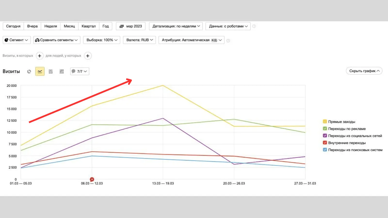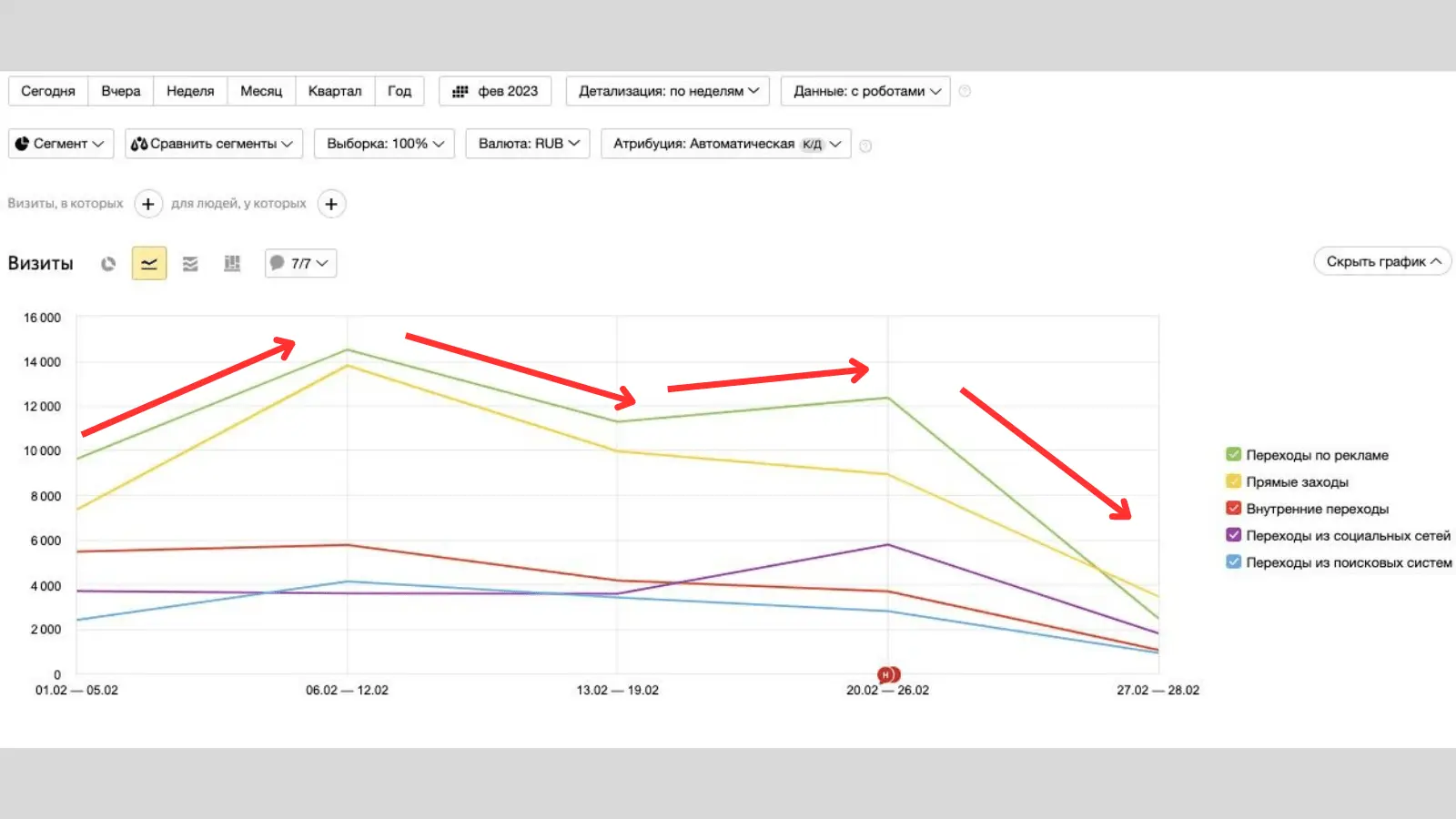 Первые 2-3 недели предстоит объёмная работа с продажами: за этот период важно качественно открутить максимально возможное количество бюджета. Почему? Потому что далее, как правило, начинается спад по спросу и запросам на товары в онлайне.