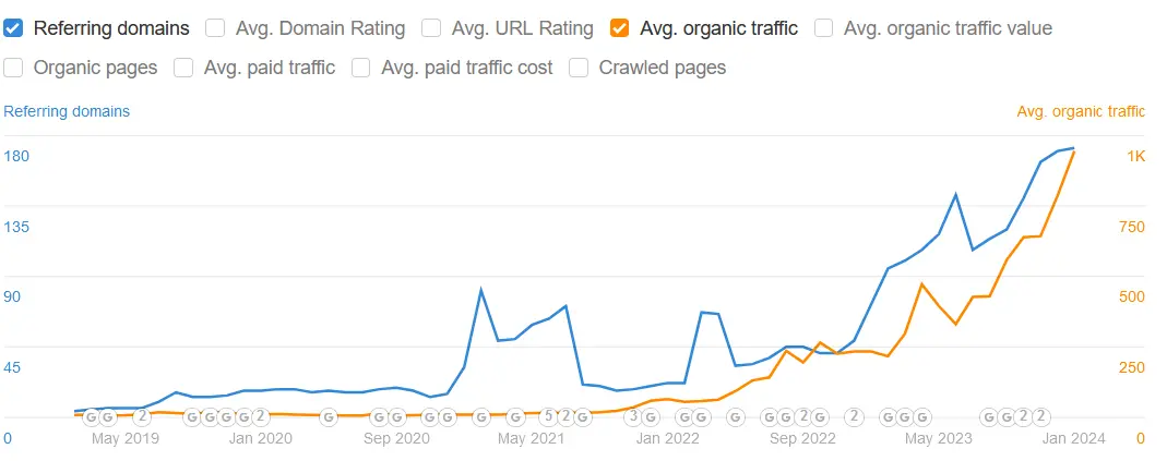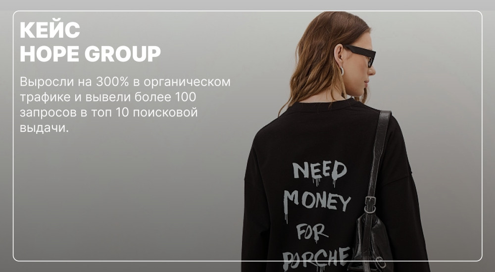 Всего было собрано руками более 3 000 ключей со спросом в Google и Яндекс. Следующим шагом был полный технический аудит проекта, описано более 20-ти пунктов доработок и передано разработчику для внедрения. Они нужны были для улучшения работоспособности сайта. Сайт был просканирован на наличие битых ссылок, проблем со скоростью, внедрена микроразметка, прописаны альты картинок и прочее. Далее был проведен полный аудит основных конкурентов, сформирована стратегия регулярного продвижения. Мы выбрали целевые группы ключей с низкими показателями KD Ahrefs (сложности продвижения). Помощник SEO-специалиста выгрузил все ссылки конкурентов, которые позже проанализировали на 10+ показателей качества. Лучшие площадки добавили к нам в базу для дальнейшего размещения наших ссылок. Регулярная SEO и закупка ссылок Ежемесячно на сайт писались 10 SEO-текстов, в том числе с блоками вопросов/ответов в микроразметке FAQ. Бюджет ссылочного продвижения изменялся по востребованию, но, в среднем, составлял 70 000 рублей. Для закупки ссылок отбирались лучшие доноры конкурентов, тематические сайты с трафиком более 10 000 посетителей/мес. и показателем DR > 30. Ссылки закупались как на биржах Миралинкс, Ротапост, так и практически половина ссылок — результат прямой работы с рекламными и новостными площадками. Динамика прироста ссылочной массы и расчетного органического трафика проекта: Почему такой бюджет на ссылочную массу? Ссылочная масса играет важную роль в определении позиций сайта в поисковых системах. Она служит индикатором авторитетности, релевантности и качества сайта в глазах поисковых алгоритмов. Понимание влияния ссылочной массы и использование соответствующих стратегий помогут владельцам веб-сайтов повысить его видимость и привлекательность в онлайн-среде. Результат работы: На данный момент органического трафика на сайте стабильно около 20 000 переходов/месяц, в пиковые месяца доходит до 29 000 переходов в месяц. Текущий показатель окупаемости SEO — более чем x3. Удалось выйти в ТОП по некоторым позициям: Шоурум — ТОП-5 Google Одежда Москва — ТОП-2 Google Плащ — ТОП-2 Google Купить бомбер женский — ТОП-7 Google Зимний тренч — ТОП-5 Google Митенки купить — ТОП-7 Google Купить свитшот женский — ТОП-9 Google и т.д. Всего более 100 запросов с частотностью свыше 100 поисков/мес. на данный момент находятся в первой десятке поисковых систем. Планы на 2024 — конкуренция с крупнейшими маркетплейсами и вывод всех категорий сайта в ТОП-10. Вы можете заказать у нас аудит в котором мы проанализируем работу вашего сайта и выстроим прогноз на ближайшие 6 −12 месяцев. Переходите на сайт Hope Group.