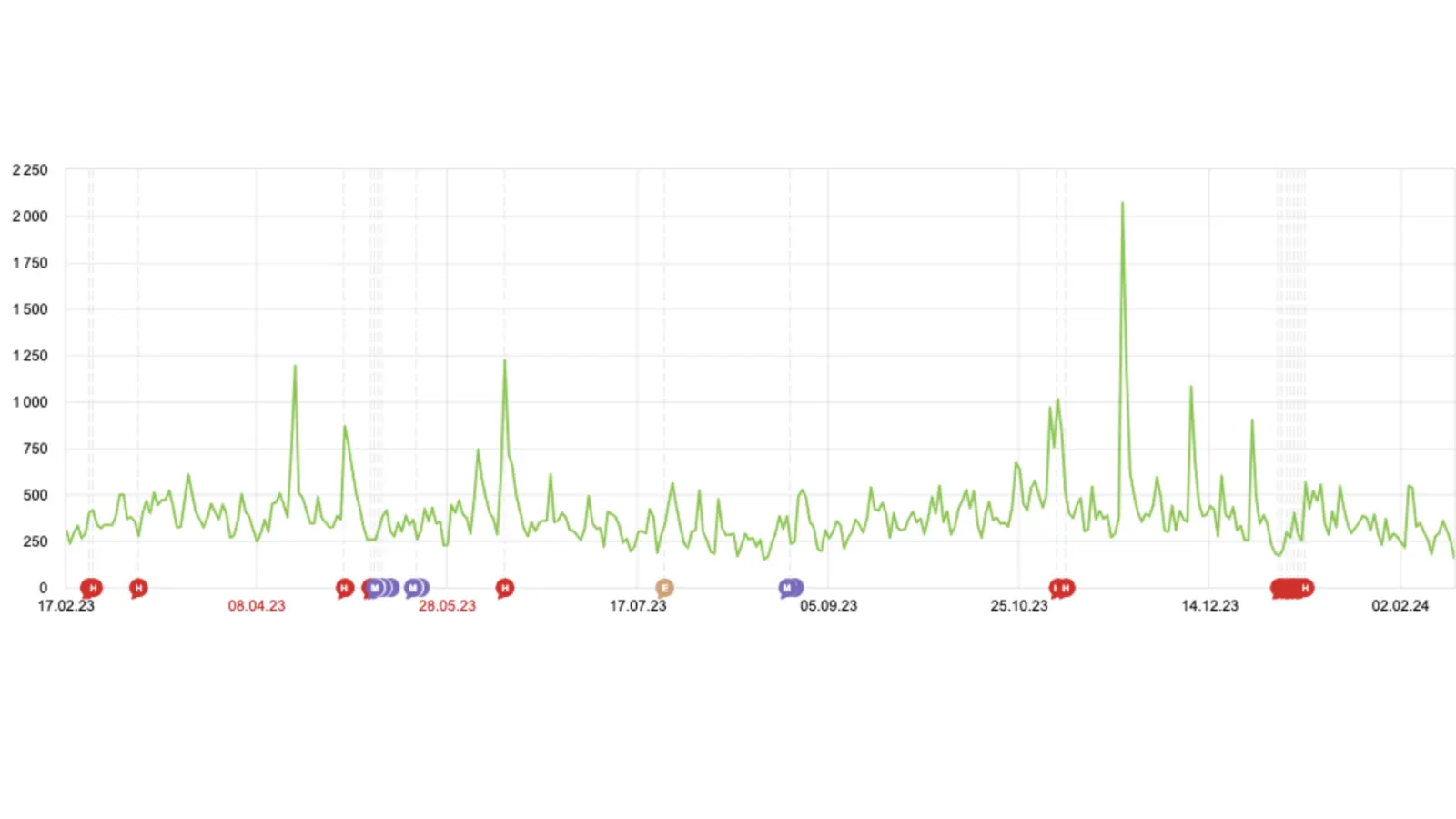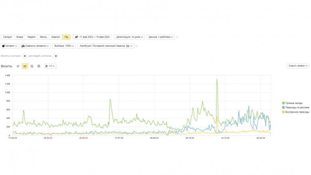 Увидеть скачки в спросе поможет Яндекс Метрика или Google Analytics. Разберем на примере Яндекс Метрики: