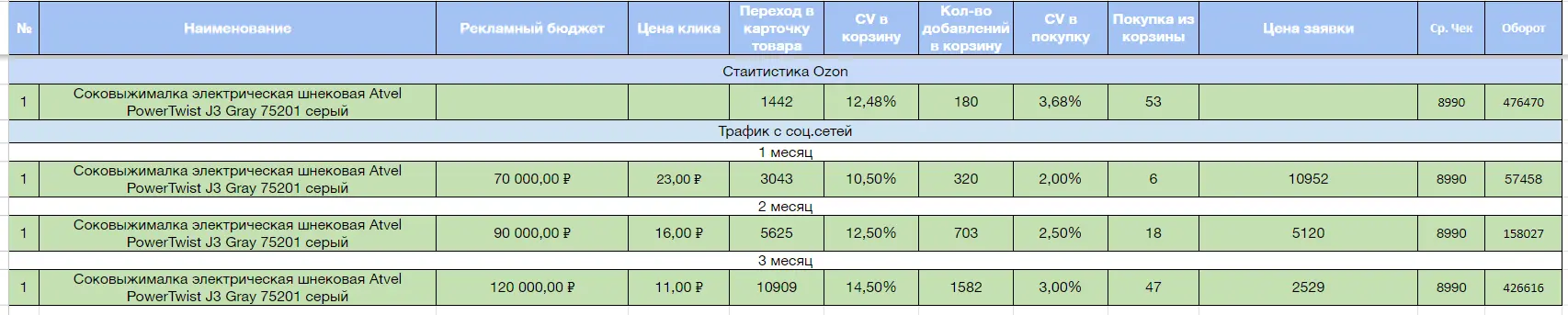 Как сделать прогноз эффективности трафика из соц. сетей на товарные карточки Ozon