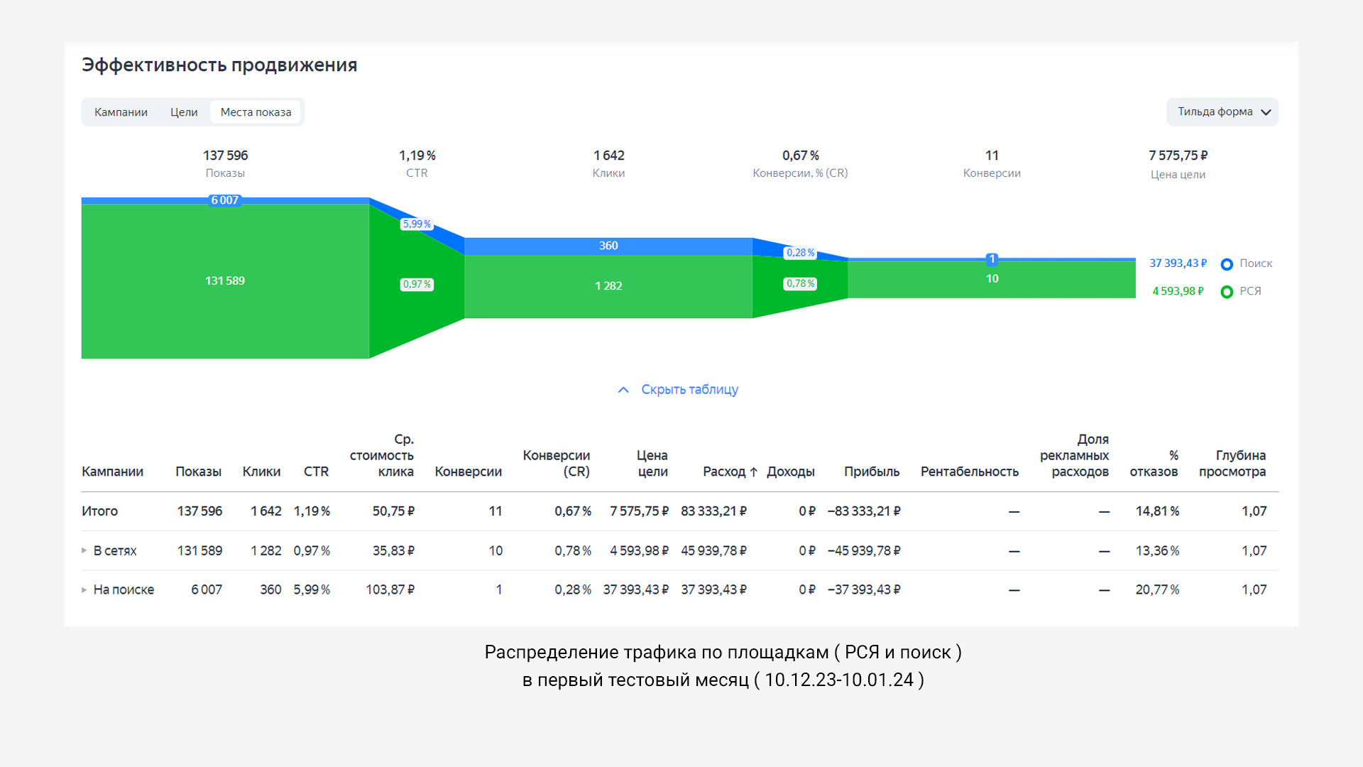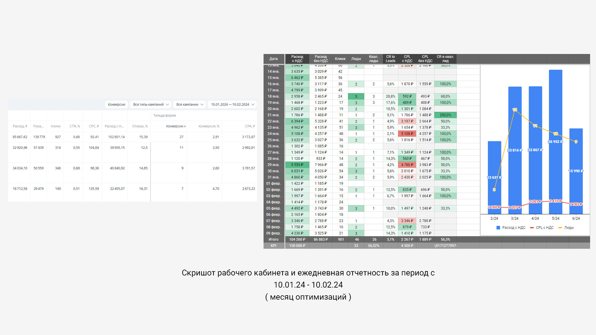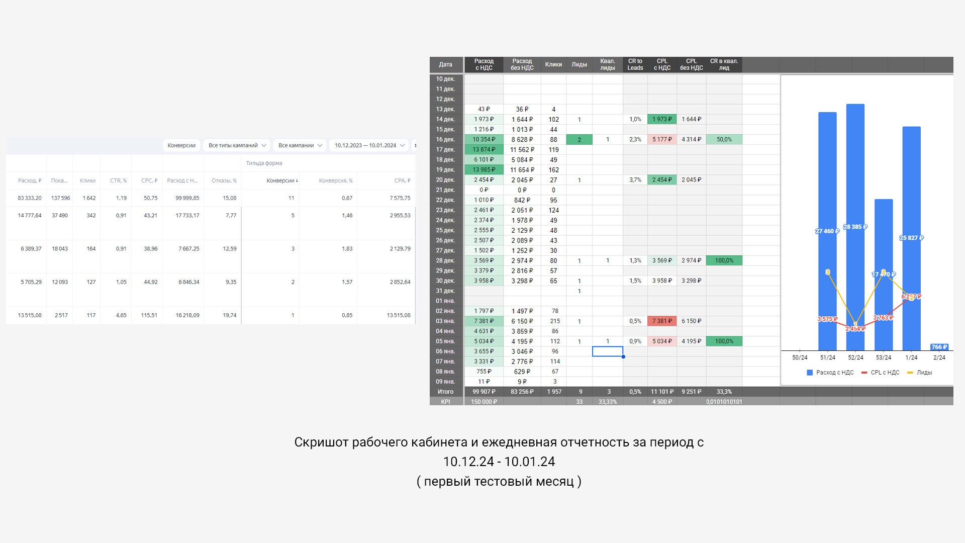 Как мы ранее упоминали — первый месяц тестовый. Основная задача — проанализировать конкурентов, протестировать все основные инструменты и целевые аудитории. С этой задачей мы справились хорошо, но почему такая дорогая цена заявки?