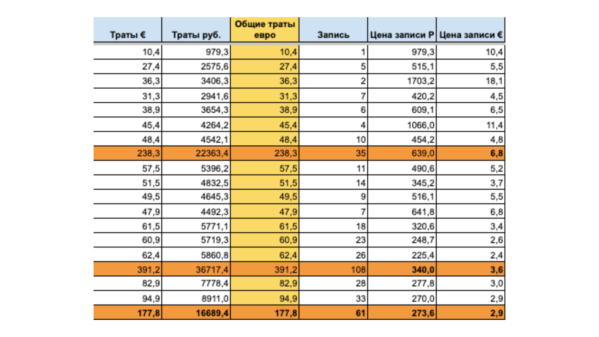 Каналы мы также разбили по нишам и направлениям: конкуренты (прямые и косвенные), онлайн-школы, каналы коучей, каналы с тематиками обучения и направленностями сферы, программирование, каналы с книгами по обучению и т.д. Пример сборки каналов по различным направлениям обучения Далее, подготовили к каждой группе соответствующие тексты объявлений. Писали о болях ЦА и какие проблемы помогает решать онлайн-школа, в чем ее преимущества. В общем, описали офферы и УТП, то, что актуально в IT-сфере. В процессе работы, мы неоднократно оптимизировали текст, но об этом позже. Посадочная страница — грамотно оформленный лендинг, который хорошо «бил» по болям ЦА, с предложением записаться на вебинар и найти решение проблемы. После регистрации на вебинар предлагалось подписаться на Telegram-канал. Запустили сразу несколько групп объявлений, стали ждать прохождения модерации и первых результатов, а далее, отталкиваясь от них, уже оптимизировать дальнейшую работу. Запуск начали с самых горячих, каналов, т.е. конкурентов. CTR колебался от 0,16 до 0,64, конечно, каждый текст отыгрывал себя по-разному. Так, спустя пару запусков объявлений, мы уже поняли, какой текст, УТП и боли работают лучше и хуже. Текст про рост в профессии и увеличение скиллов сработал лучше всего, мы предлагали то, в чем сильна онлайн-школа и как это поможет в решении проблем ЦА. Стоит упомянуть о том, что все посадочные в Telegram Ads у нас вели на сайт. Поэтому каждый текст соответствовал определенной посадочной, что помогло увеличить % конверсий и CTR. Каждую посадочную на каждое объявление мы размечали UTM-метками, благодаря которым, через сервис Яндекс Метрики, могли анализировать трафик и определять количество и качество заявок. Пример UTM-меток для отслеживать эффективности аудиторий В первую неделю запуска мы держали цену заявки до 638 рублей, что довольно дорого и не вписывалось в план. Мы понимали, что цена будет не сразу оптимальной, так как писали выше, рынок перегружен, соответственно и каналы на которых мы показывались, были перегружены рекламой, и пользователи просто уже не реагировали на нее, или вяло отзывались. Ситуацию могло спасти сегментация аудитории и оптимизация. Результаты тестового периода Цель была снижать цену заявки до 300 рублей. Наша ставка была на сегментацию и оптимизацию кампаний. Тут логика простая: чем выше СТr тем ниже цена клика — в накрученных каналах, очевидно, CTr будет ниже, так как большая часть аудитории боты. А оптимизация кампаний по UTM-меткам это [БАЗА] позволяющая эффективно тратить рекламный бюджет. Так же мы сделали ставку количество аудиторий — важным правилом у нас было то, что мы запускаем тестовые кампании ежедневно в условленном количестве. Это позволяет избежать быстрого перегоранием аудиторий, которое так популярно на TG Ads, и не получить замедление работы с проектом или просадку в заявках. Тоже столкнулись с трудностями при оптимизации рекламных кампаний? Записывайтесь на[бесплатный] аудит у нашего специалиста: проконсультируем по оптимизации и определим точки роста в вашем проекте Результаты после оптимизации запускаемых каналов и текстов улучшились: количество заявок увеличилось, а цена заявки уменьшилась в 2 раза! Конечно, дело было не только в новых и неочевидных для IT темы подборках каналов, но и в том, что мы очень много времени уделяли оптим
