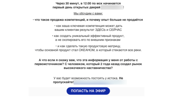 Пример приветственного письма одного из проектов