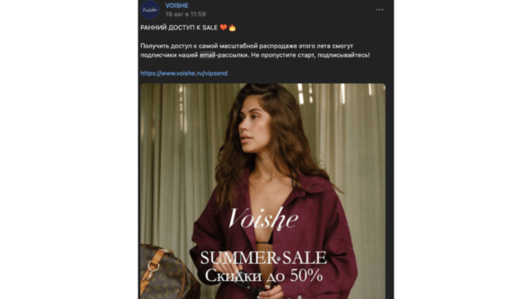 Данный способ включает в себя работу с таргетом: нужно будет запустить рекламное объявление с предложением подписки на вашу рассылку. Но не забудьте указать оффер, зачем человеку это делать? Чем это будет полезно? К примеру, рассылка будет отличаться от публикуемых постов, будет содержать эксклюзивные рубрики, и подписчики рассылки будут первыми получать различные выгодные предложения и скидки.