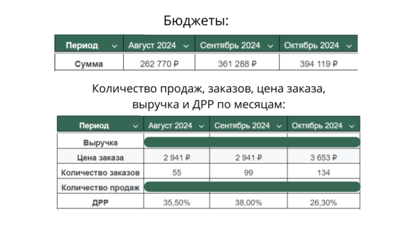 Работу с брендом начали с апреля 24 года и продолжаем на данный момент, и ранее уже рассказывали как нам удалось в проекте снизить цену заказа в 2,5 раза, при этом ДРР удержали до 30% (это был период работы с апреля по июль 2024).