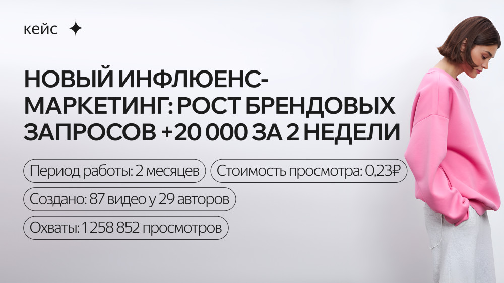 Когда бренду важно не просто получить охваты, но и создать контент, который органично работает в соцсетях, стандартные интеграции с блогерами не всегда подходят. В этом акцент на креаторах, нативности и органических охватах — получили 1,25 млн просмотров и десятки видео для бренда одежды при бюджете в 200 000 рублей. Рассказываем, как всё устроено.