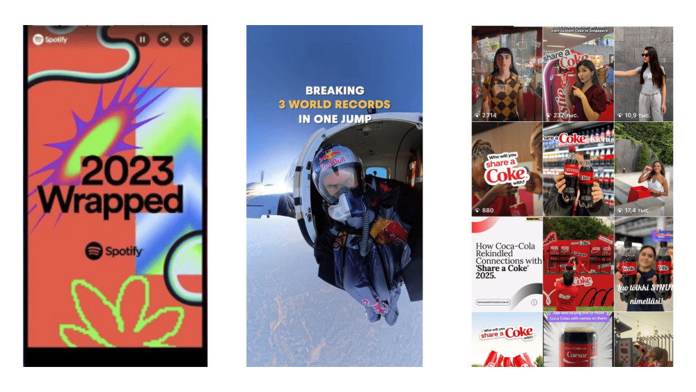 Например: IKEA регулярно выпускает короткие видео «How to» — как быстро собрать мебель, как компактно организовать хранение на маленькой кухне, как сделать уютный уголок в спальне. Без лишнего пафоса — только практичность и польза. За счет того что видео короткие — внимание аудитории проще удержать, а из-за практичного применения к бренду больше прислушиваются. Как результат, такие видео собирают миллионы просмотров, пользователи сохраняют их, делятся в комментариях своими лайфхаками — и при этом чаще заходят на сайт за покупками. Идея от нас, что можно сделать брендам: 1. Продумайте, чему может научить ваш продукт; 2. Сделайте короткий гайд, видео или подборку; 3. Публикуйте это на сайте, в соцсетях и рассылайте в email. Не лишним также будет устроить мини-опрос в соцсетях бренда, и узнать у своей аудитории, какая тематика такого формата им была бы интересна и полезна. Например: Создавайте контент, который помогает аудитории — и дайте вашему продукту сыграть роль помощника, а не главного героя. Это укрепит доверие и плавно подводит к покупке. Контент, построенный на эмоциях и истории. Особенно — если есть герой, за которым хочется следить. Сторителлинг вызывает эмпатию и удерживает внимание. Когда мы следим за чьей-то трансформацией, мы вовлекаемся и сопереживаем. Это не просто рассказ «о продукте», это погружение в путь, где бренд становится проводником или способствует изменениям. Мы любим смотреть, как кто-то справляется — и перенимаем этот опыт. Например: Dove запустил «Real Beauty» — кампанию с обычными женщинами, говорящими о реальных переживаниях. Никакой глянцевости и «вылизанной» картинки, только искренность. Истории вызвали эмпатию, стали вирусными и переформатировали восприятие бренда. И как результат вышло +30% к лояльности бренда и огромный PR-эффект в мировых медиа. Как внедрить брендам: 1. Рассказывать историю реального клиента; 2. Построить контент по пути от проблемы к решению, и сделать упор на «боли» большинства аудитории; 3.Сделайте героя узнавае��ым — пусть человек увидит в нем себя. Когда за вас говорят ваши клиенты — это доверие и показатель высокой лояльности к бренду. Фото, отзывы, сторис, видео с продуктом работают мощнее любой рекламной кампании, и мы ни раз это подтверждали в своих кейсах на практике. UGC воспринимается как искренняя рекомендация от «своих». Люди больше доверяют другу или блогеру на которого подписаны, чем рекламе в интернете. Когда покупатели сами говорят, что ваш продукт классный и действительно работает — это самый сильный аргумент. Пример: В кампании «Share a Coke» Coca-Cola просто напечатала имена на бутылках. А пользователи начали охотиться за своим именем, выкладывая фото в Instagram* и Facebook*. Это быстро превратилось в вирусный тренд, и привело к росту продаж на 14%, и к более 500.000 фото за год, плюсом мощный эффект присутствия в соцсетях. *Принадлежит Instagram — проект Meta Platforms Inc., деятельность которой в России запрещена Как применить метод на практике: 1.Создайте стимул делиться контентом (конкурс, тег, эмоция); 2. Показывайте пользовательские фото в своем аккаунте, делайте репосты в сторис, показывайте отметки; 3. Благодарите и вовлекайте участников — это усиливает эффект, ведь аудитории нравится когда ее замечает сам бренд. Создайте повод для покупателя сделать фото с вашим продуктом. Это может быть конкурс, интере