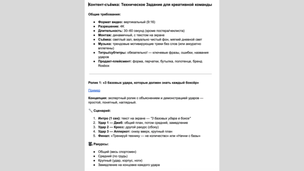 По результатам встреч составлен подробный план работы с распределением по этапам, чтобы заказчик мог видеть весь процесс и контролировать прозрачность действий. *Instagram — проект Meta Platforms Inc., деятельность которой в России запрещена Проведен анализ ключевых конкурентов в спортивной нише, в том числе: Кроме локальных игроков, были изучены зарубежные бренды-вдохновители, которые уже выстроили коммуникацию на основе сходных ценностей и являются ориентиром по упаковке, тону и подходу к комьюнити. *Instagram — проект Meta Platforms Inc., деятельность которой в России запрещена На основе собранной информации и действующей бренд-платформы была разработана контент-стратегия, в которую вошли: 1. Формулировка Tone of Voice (ToV) Энергичный, мотивирующий, с элементами дружеской поддержки и экспертной уверенности. Контент вдохновляет на движение вперед, передает силу духа, дисциплину и любовь к спорту. Важно было не просто продавать одежду, а говорить с аудиторией на одном языке, создавать ощущение, что бренд — это напарник в зале и в жизни. 2. Рекомендации по упаковке аккаунтов Переработка шапки профиля: био, ссылки, Call to Action — четко и структурировано, чтобы с первых секунд было понятно, кто бренд, в чём сила. Оформление хайлайтов* и визуальных блоков: обновлены обложки, добавлены недостающие рубрики, логично распределен контент по рубрикам. Обновление визуальной концепции: выработан единый стиль для ленты — от цветовой палитры до логики компоновки фото и видео, чтобы визуально считывались идеи бренда и создавалось запоминающееся первое впечатление. Создание удобной навигации под особенности каждой соцсети: где мы находимся, что за бренд, офлайн-точки, способы взаимодействия и прямая коммуникация — вся необходимая информация теперь под рукой у подписчика. *Принадлежит Instagram — проект Meta Platforms Inc., деятельность которой в России запрещена 3. Планирование *Instagram — проект Meta Platforms Inc., деятельность которой в России запрещена Для того чтобы оживить контент и выделить бренд среди конкурентов, была поставлена задача: отойти от простых выкладок товаров и перейти к более сложным, эмоциональным и трендовым форматам. Были разработаны новые направления контента, включая: Под новые форматы подготовлены технические задания (ТЗ) для команды бренда и их креаторов. В ТЗ вошли: После согласования стратегий и ТЗ началась реализация: Контент начал не просто показывать товар, а вовлекать, мотивировать, объединять. Главная цель: не только восстановить активность, но и сформировать у аудитории эмоциональную связь с брендом, вызвать желание поддерживать его, ассоциировать себя с ним, добровольно делиться контентом, делать отметки и говорить от лица бренда. Таким образом, формируется органичный UGC, который значительно ценнее любой рекламы — это осознанный выбор и лояльность. *Принадлежит Instagram — проект Meta Platforms Inc., деятельность которой в России запрещена. Скрины взаимодействия с Reels* до / после старта работыЕсли вы тоже хотите эффективно и регулярно расти через креативный контент — запишитесь на расчет медиаплана и стоимости продвижения у нашего специалиста: мы изучим проект, разберем возможные стратегии и вернемся с прогнозом развития вашего проекта *Принадлежит Instagram — проект Meta Platforms Inc., деятельность которой в России запрещена Telegram-канал на этом этапе проходил смысловую и ви