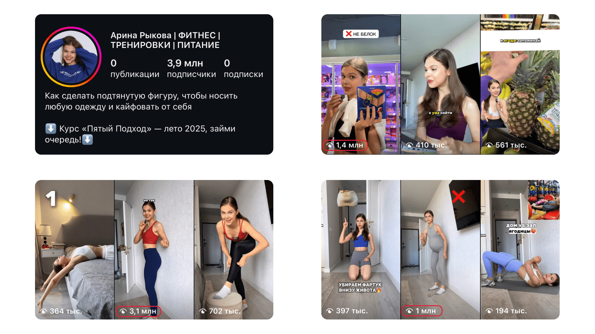 - Тренд и объем — ставка на постоянный поток коротких роликов с триггерными темами и полезным содержанием.