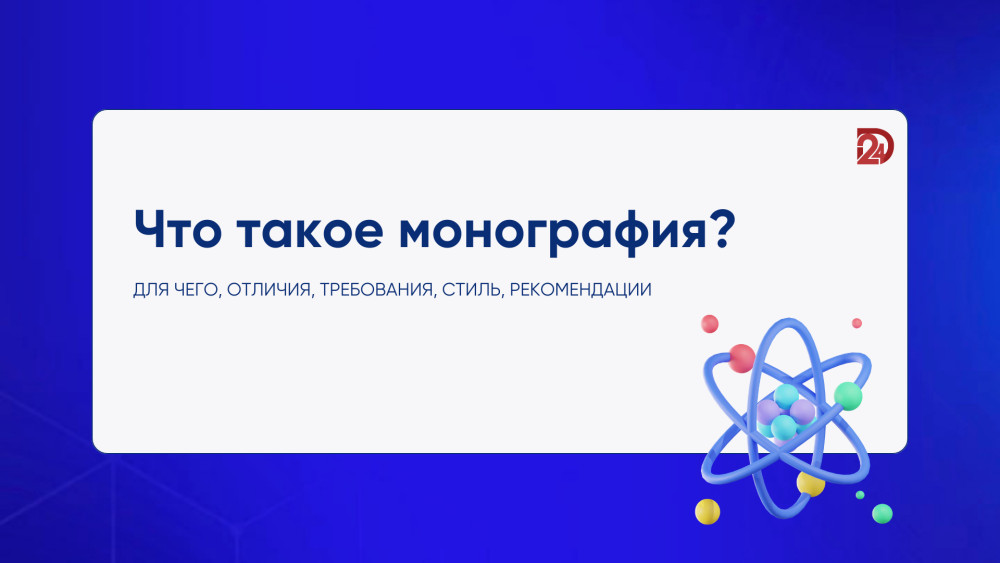 Монография — это научное исследование, которое представляет собой глубокое и всестороннее изучение определенной темы. Монография может содержать анализ литературы, обобщение данных, представление результатов исследования и выводы. Монографии обычно публикуются в виде книг или отдельных изданий.