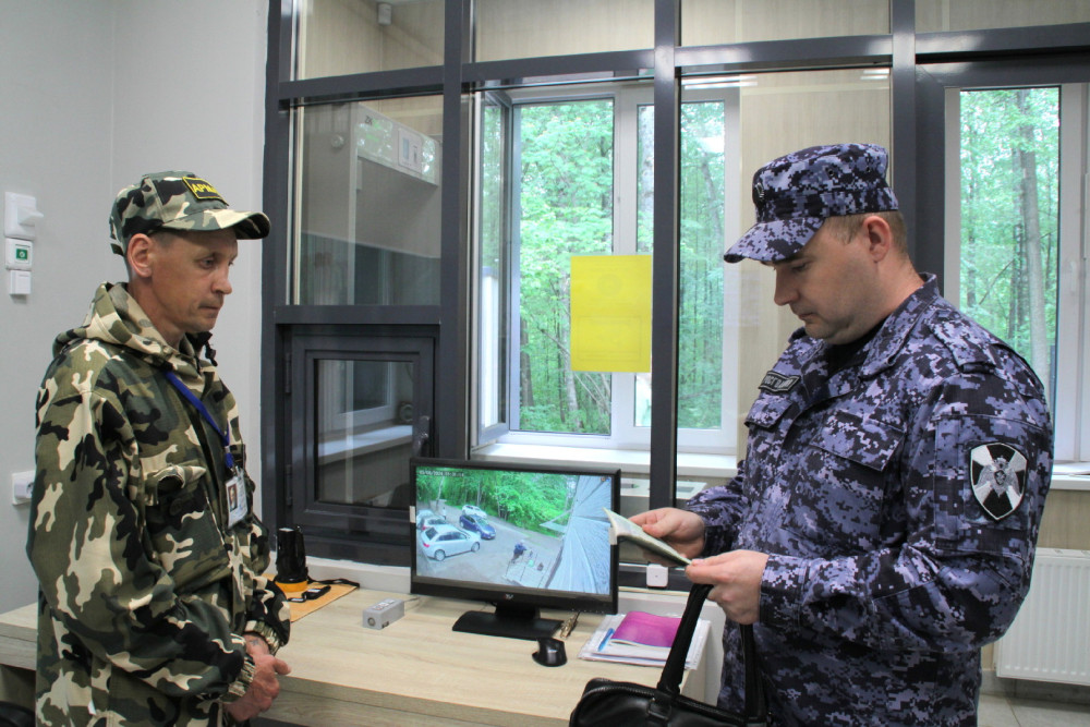 Плановое обследование объекта продолжил сотрудник отдела лицензионно-разрешительной работы территориального управления Росгвардии. На контрольно-пропускном пункте спортивно-оздоровительного лагеря он проверил несение службы работниками частной охранной организации.