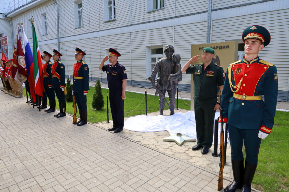В казанском специальном моторизованном полку Приволжского округа Росгвардии состоялось торжественное открытие мемориала в память о военнослужащих воинской части, погибших при исполнении боевого долга в ходе специальной военной операции.Главным элементом мемориала, созданного татарстанским скульптором Вадимом Иксановым, стала фигура военнослужащего в боевой экипировке, удерживающего на руке девочку. Рядом расположен обелиск, на котором увековечены имена погибших военнослужащих.