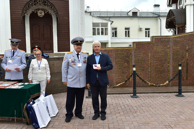 Из речного порта свердловчан сопроводили на территорию министерства внутренних дел, где гости осмотрели мемориально-культового комплекса и ведомственного музея. Отставники возложили цветы к мемориалу погибших при исполнении служебных обязанностей сотрудников органов правопорядка, после чего состоялось торжественная церемония награждения ветеранов двух регинов, принимающих активное участие в общественной деятельности. Среди награжденных медалями и нагрудными знаками межрегиональной общественной организации ветеранов войск правопорядка Уральского федерального округа были и ветераны Росгвардии. Так, полковник милиции в отставке Валерий Харитонов удостоился «Знака Почета Общероссийского общественной организации ветеранов ОВД Свердловской области». Медалью «Всегда на страже» наградили майора внутренней службы в отставке Ивана Галишникова и майоров милиции в отставке Анатолия Игнатьева и Марата Хамидуллина. Нагрудным знаком «За патриотическое воспитание» — полковника в отставке Николая Титова, подполковника милиции в отставке Анатолия Беспалова и майора запаса Алексея Боровкова. В ответ росгвардейцы вручили двоим гостям почетные грамоты Управления Росгвардии по Республике Татарстан. По окончанию официальной части для уральского «ветеранского десанта» организовали экскурсию по городу с посещением музея-заповедника «Казанский Кремль» и других культурных и исторических объектов. Во время общения активисты двух крупнейших ветеранских организаций правоохранителей поделились планами работы по патриотическому воспитанию личного состава и учащихся образовательных учреждений, а также обменялись опытом. Перед отъездом представители Среднего Урала поблагодарили своих соратников за теплый прием и выразили надежду на дальнейшее плодотворное сотрудничество.