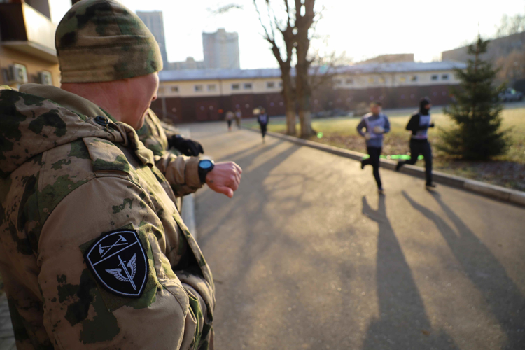 На втором этапе мужчины соревновались в беге на 5 километров, а женщины — три километра. В зачет служебного двоеборья шли три лучших результата по сумме очков, набранных участниками команд.