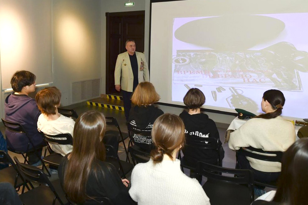 Ветеран боевых действий Сергей Лукомский рассказал молодежи о срочной службе в пограничных войсках на территории Афганистана, о трудностях, с которыми ему и сослуживцам пришлось столкнуться, и о том, почему важно сохранять память об афганской войне.