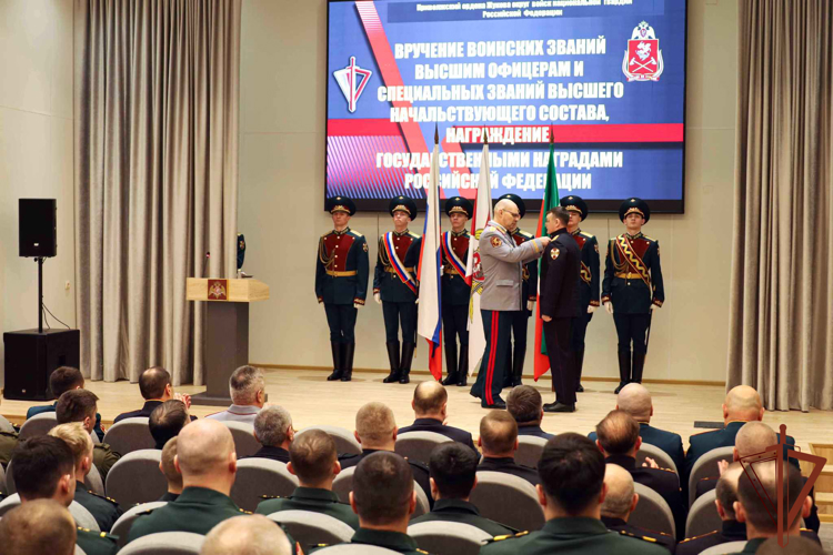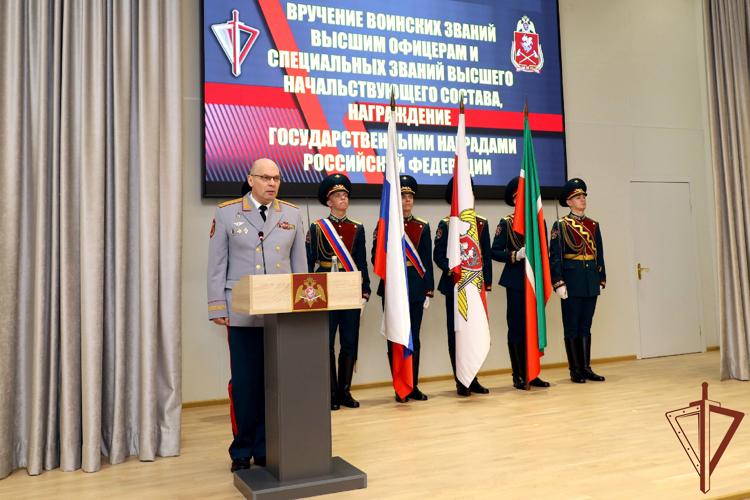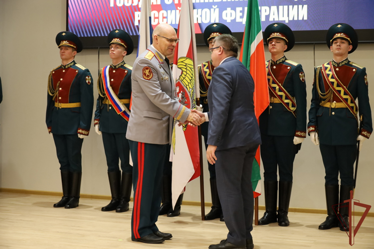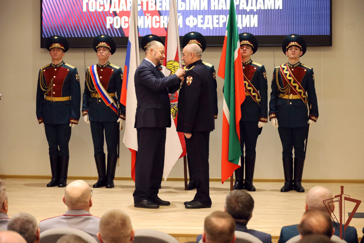 Помимо этого, генерал-полковник Олег Плохой по поручению директора Росгвардии Героя Российской Федерации генерала армии Виктора Золотова поздравил с присвоением высших воинских и специальных званий высшего начальствующего состава должностных лиц Приволжского округа, а также вручил государственные и ведомственные награды военнослужащим и сотрудникам, отличившимся при выполнении служебно-боевых задач. В указанном мероприятии принял участие руководитель Администрации раиса Республики Татарстан Асгат Сафаров, который вручил отличившимся военнослужащим и сотрудникам награды Республики Татарстан за достигнутые высокие результаты в служебной деятельности и значительный вклад в укреплении законности и правопорядка. Кроме того, генерал-полковник Олег Плохой и командующий округом генерал-полковник Сергей Просяник ознакомились со служебно-боевой деятельностью территориального управления и воинских частей, дислоцированных на территории республики. Отмечена важность дальнейшего совершенствования профессиональных навыков военнослужащих и сотрудников Росгвардии, обращено внимание на необходимость выработки эффективных механизмов развития материально-технической базы подразделений войск правопорядка в Республике Татарстан. Кроме того, за оказание содействия в выполнении задач и осуществлении полномочий, возложенных на войска национальной гвардии Российской Федерации, медалью «За содействие» был награжден директор филиала ФГУП ВГТРК ГТРК «Татарстан» Фирдус Гималтдинов. В церемонии приняли участие командующий Приволжским ордена Жукова округом войск национальной гвардии Российской Федерации генерал-полковник Сергей Просяник и руководитель Администрации главы Республики Татарстан Асгат Сафаров. «За каждой высокой наградой стоят образцовое выполнение поставленных служебно-боевых задач, примеры личного мужества, героизм, верность Присяге и Отечеству. Благодаря вашей доблестной службе крепнет наша страна. Российское общество обретает уверенность и достоинство», — отметил статс-секретарь — заместитель директора Росгвардии.