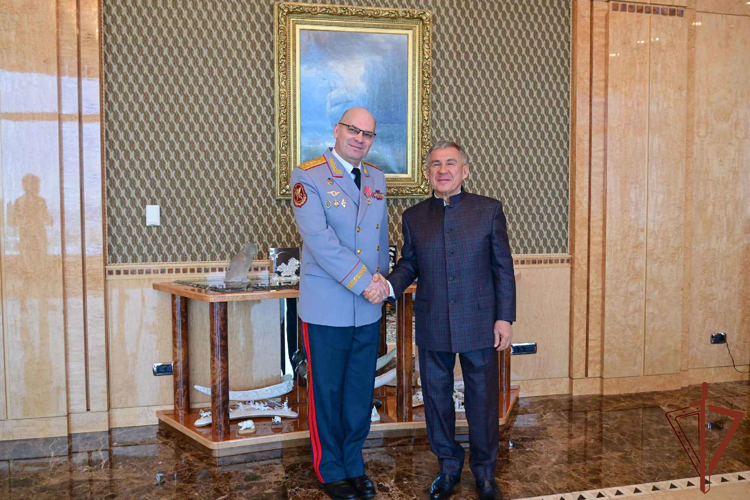 В рамках визита в Республику Татарстан статс-секретарь — заместитель директора Федеральной службы войск национальной гвардии Российской Федерации — главнокомандующего войсками национальной гвардии Российской Федерации генерал-полковник Олег Плохой провел встречу с раисом Республики Татарстан Рустамом Миннихановым.