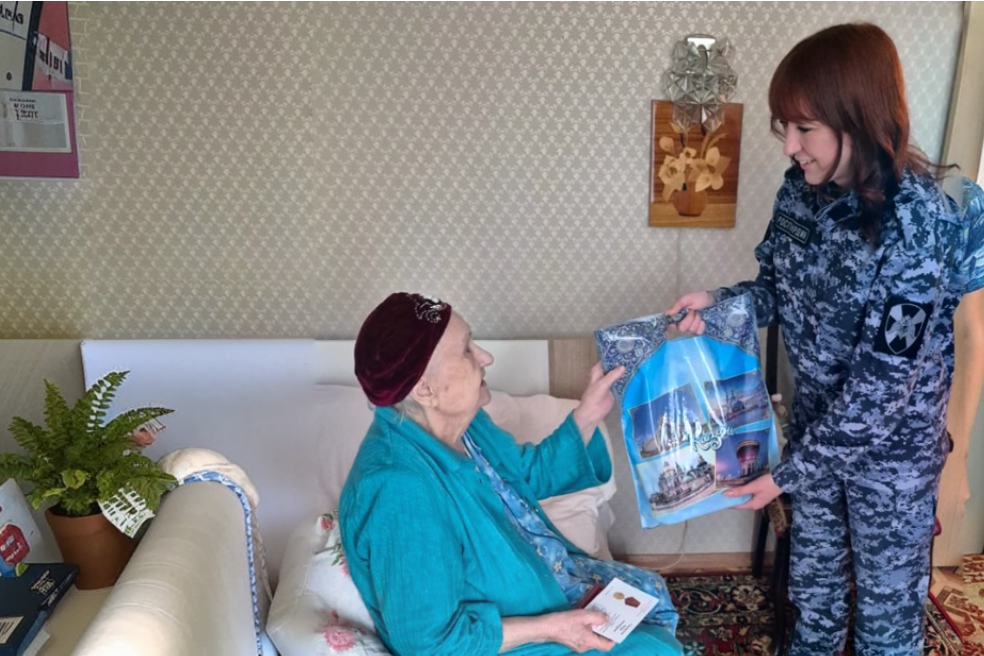 Сотрудники Росгвардии выполнили почётную миссию по вручению юбилейной медали, учрежденной Президентом России, труженикам тыла — Мунире Биктимировне Гатиатуллиной и Альберту Фаткулбаяновичу Хакимову. Ранее эти ветераны работали в казанских отделах вневедомственной охраны на гражданских должностях.