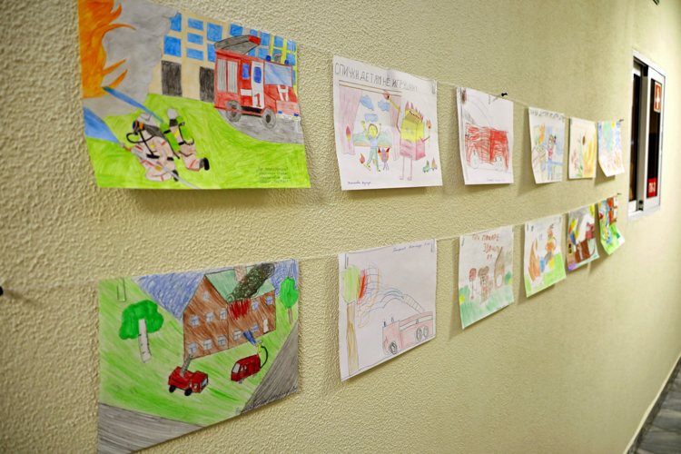Юные художники — дети сотрудников и военнослужащих территориального управления. Выставка размещена в административном здании Управления, где каждый желающий может увидеть яркие и трогательные иллюстрации, отражающие героические будни пожарных.