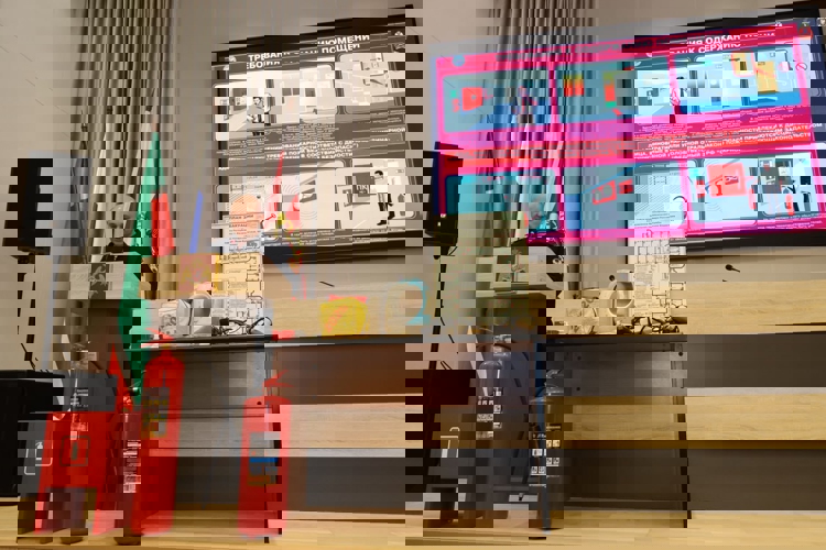 После теоретической части прошла практическая тренировка: сотрудники отработали действия при пожаре, применение огнетушителей, эвакуацию и взаимодействие дежурных служб.