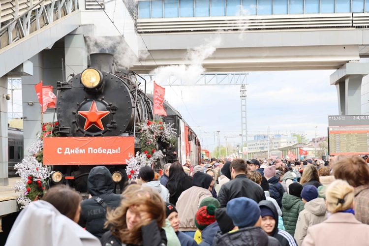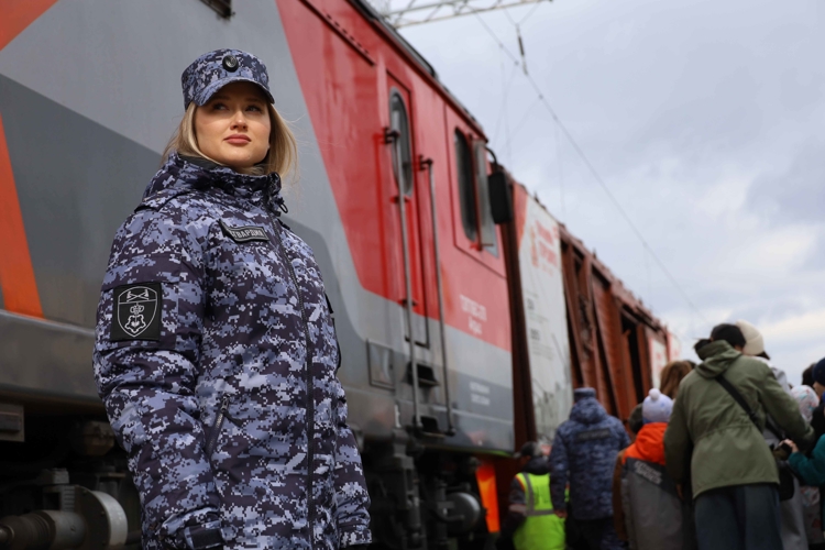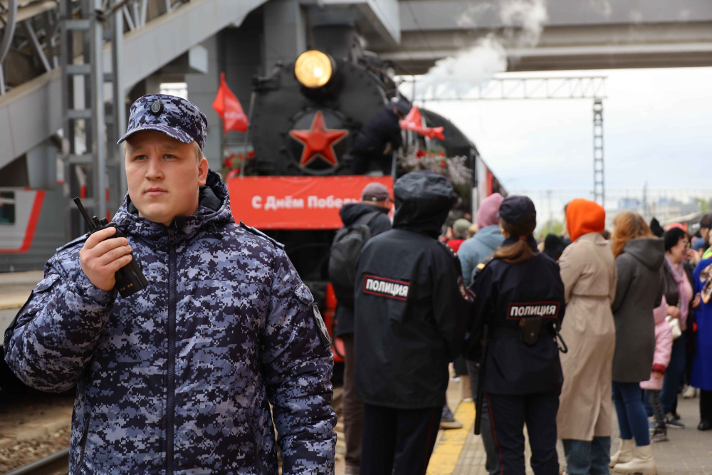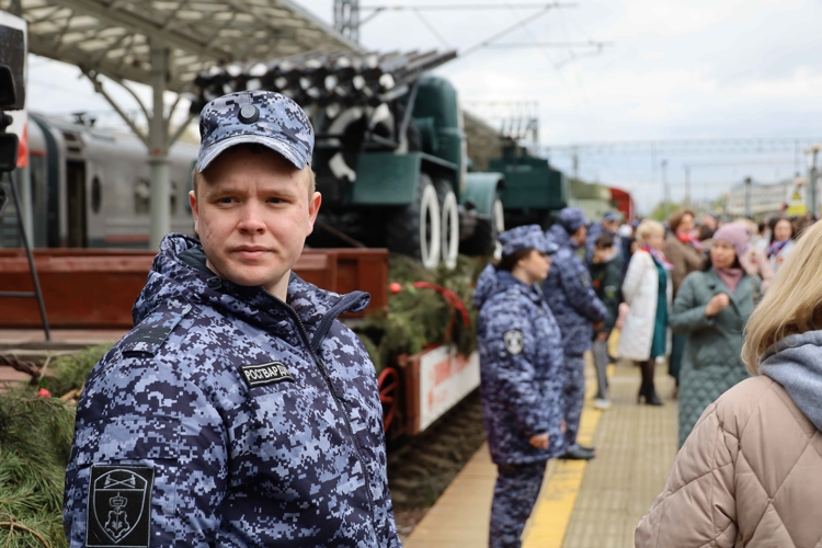 На платформу железнодорожного вокзала «Казань-1» прибыла передвижная иммерсивная инсталляция «Поезд Победы». Во взаимодействии с полицией общественный порядок и безопасность обеспечивали сотрудники Управления Росгвардии по Республике Татарстан.