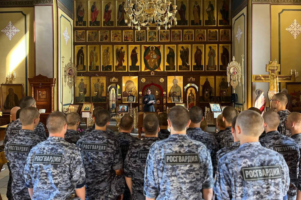 Представитель духовенства прочитал проповедь о благородном ратном труде, а также о житии почитаемого в войсках национальной гвардии Российской Федерации святого равноапостольного князя Владимира.