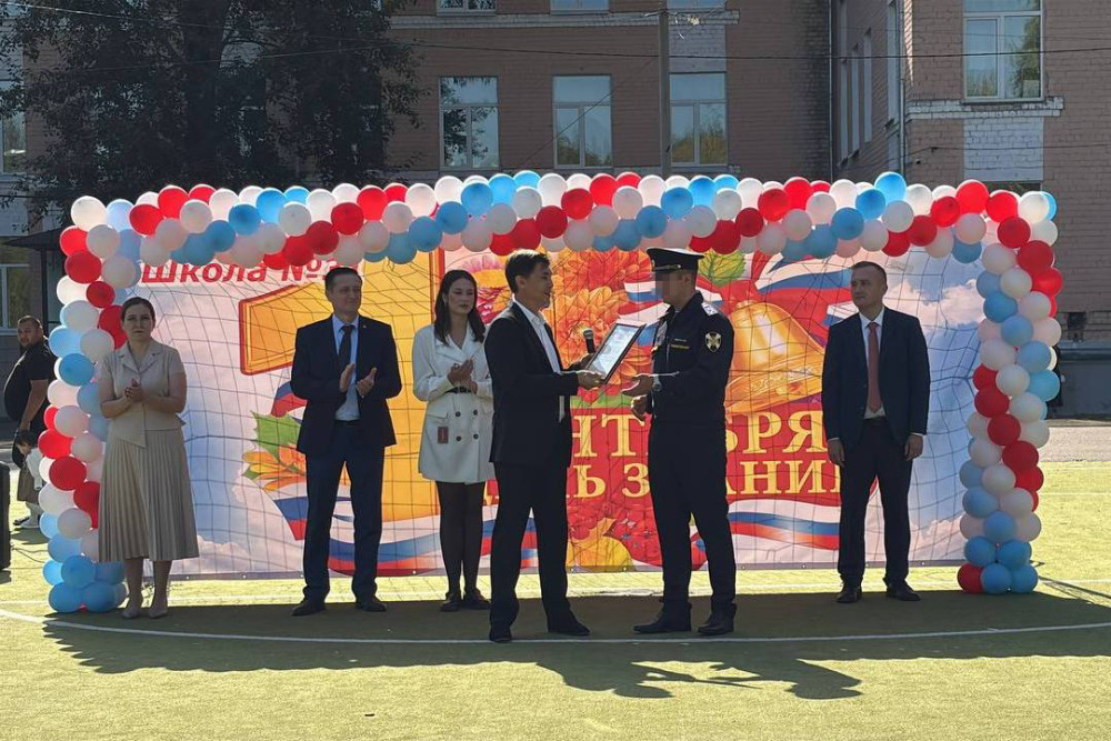 В ходе торжественной линейки росгвардеец обратился к ученикам, родителям и педагогам: