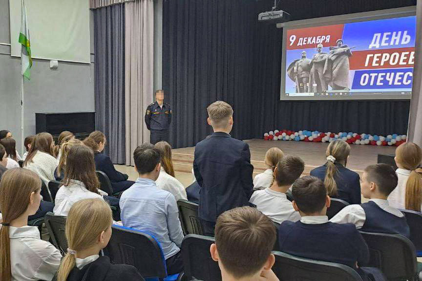 Во время уроков офицер рассказал школьникам об истории памятной даты, героических подвигах военнослужащих и сотрудников Росгвардии, а также поговорил об основах героизма и качествах настоящего Героя.