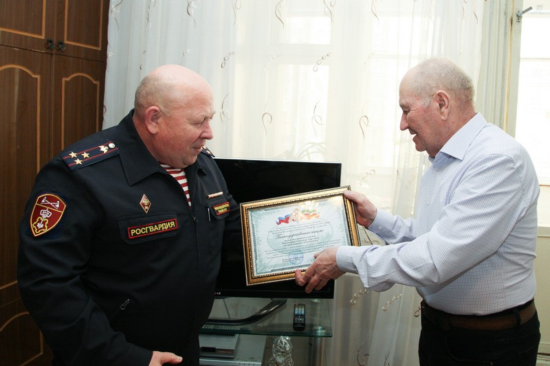 Со знаменательной датой виновника торжества приехали поздравить заместитель начальника ФГКУ «УВО ВНГ России по РТ» и представители ведомственной ветеранской организации. Ветерану торжественно вручили благодарственное письмо от имени начальника Управления вневедомственной охраны республики и подарки. Гости пожелали Александру Сергеевичу здоровья, благополучия и всего самого наилучшего. Пользуясь случаем, офицеры поздравили ветерана с грядущим 10-летием со дня образования Росгвардии и 215-й годовщиной со дня образования войск правопорядка.
