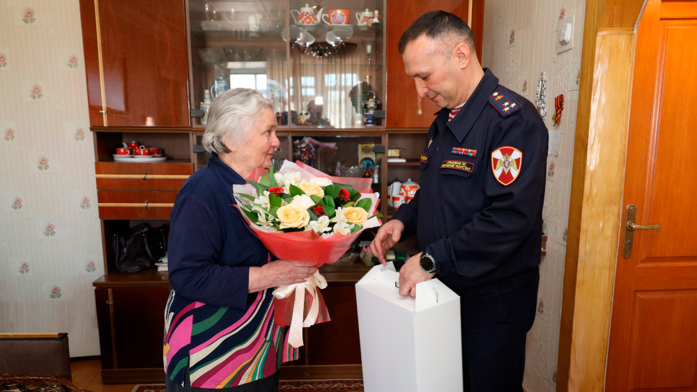 В рамках празднования 10-летия со дня образования Росгвардии и 215-й годовщины войск правопорядка заместитель начальника Управления Росгвардии по Республике Татарстан полковник полиции Рафил Набиуллин поздравил с профессиональным праздником двух участников Великой Отечественной войны - ветеранов ведомства.