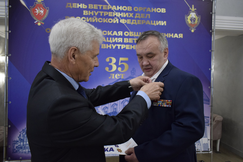 В свою очередь председатель совета ветеранов ФГКУ «УВО ВНГ России по Республике Татарстан» полковник милиции в отставке Валерий Харитонов также вручил двум ветеранам юбилейную медаль к 35-летию организации.