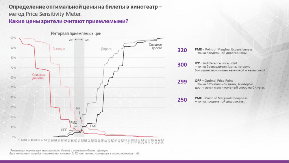 Эксперты также выявили ценовые барьеры, которые могут помешать зрителям посещать кинотеатры чаще или приобретать дополнительные услуги, и провели анализ ценовой эластичности для прогнозирования реакции на потенциальное повышение цен или скидки.