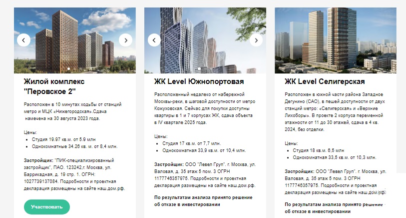 Компания Simple Estate создала платформу для совместного инвестирования в коммерческие объекты. География различна, есть проекты в Москве, Подмосковье, в Новосибирске. Среди объектов на сайте компании — бизнес-центр и продуктовый стрит-ритейл. В частности, предлагается вложить средства в создание магазина «Магнит» в Люберцах с общей прогнозной доходностью 14,3% годовых. Порог входа — от 100 000 рублей. Как это работает. При вложениях в коммерческую недвижимость инвестор получает доход от сдачи объекта в аренду. Средства коллективных инвесторов привлекаются через форму Акционерного общества (АО), которое становится единственным собственником после покупки объекта, а инвесторы владеют долей пропорционально вложенным средства. То есть на сумму займа инвестор покупает акции компании, открытой под объект инвестирования, и получает доход как дивиденды от арендного потока. Таким образом, доходность формируется за счет дивидендной доходности и прибыли от сдачи в аренду. Доходность. Целевая доходность объектов разная — от 14,6% до 20,5% годовых, отмечается на сайте проекта. Это число показывает, насколько процентов может вырасти стоимость акций компании за год + дивиденды. Средняя дивидендная доходность за пять лет также разная для всех объектов и составляет до 15,7% годовых. Порог входа. От 100 000 рублей. Риски. Безрисковых инвестиций вообще не существует. В случае с коммерческой недвижимостью — это вложения в неликвидный объект, который не будет пользоваться спросом у арендаторов. Конечно, инвестиционные площадки, работающие с недвижимостью, предлагают обычно уже проверенные проекты с точки зрения ликвидности. Но это не гарантия безубыточности. Коммерческие объекты, например, больше подвержены снижению в общие периоды экономической нестабильности. Поэтому к выбору проекта для инвестиций стоит подходит с умом, грамотно оценивая не только сам объект, но и локацию и прочие факторы. Впрочем, как и в случае с любой другой недвижимостью. В том числе, и новостройками. Вариант 2. Коллективные инвестиции в новостройки Например, через платформу «ВместеДом». Сама компания позиционирует себя как «первую в России платформу коллективных инвестиций в новостройки». По крайней мере, так сказано на ее сайте. Там же представлен список потенциальных объектов для инвестирования, один из них доступен для сбора средств. Но пока открытие счетов временно приостановлено. Как это работает.Совместная покупка квартиры в новостройке на стадии котлована и продажа на более поздней стадии готовности дома. Фонд выбирает «объекты с высоким потенциалом роста», выкупает квартиры оптом со скидкой и перепродает в точке 50% готовности дома — именно на этой стадии происходит основной рост стоимости, уверены организаторы. Доход после продажи этих объектов реинвестируется в следующие покупки недвижимости на котловане, продолжая инвестиционный цикл. п Компания собирает средства инвесторов через ЗПИФ (закрытый паевый инвестиционный фонд): клиенты покупают паи и получают долю во объектах, опять же, пропорционально приобретенному количеству паев. После окончания строительства компания продает объекты и подбирает новые. Если в течение срока формирования фонда необходимая для приобретения объекта сумма не будет собрана, деньги будут возвращены в полном объеме, обещают орган