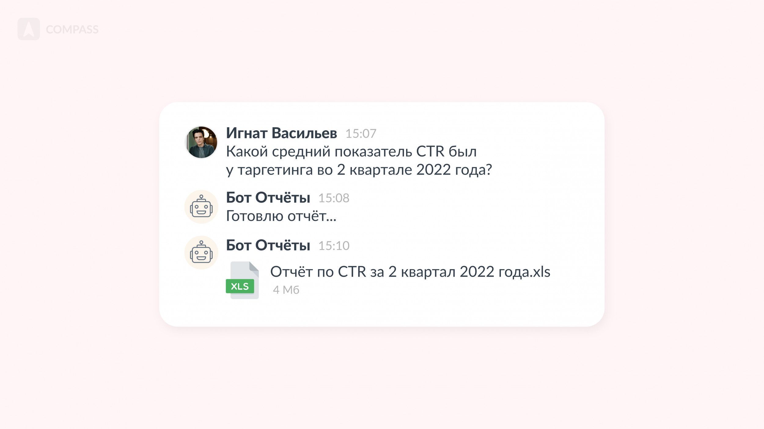 Самое главное, что нужно знать о возможностях чат-ботов внутри корпоративных мессенджеров: если что-то возможно автоматизировать — используйте ботов для этого. Чтобы освободить сотрудников от рутины, замкните все повторяющиеся механические задачи на мессенджере. Это позволит команде заниматься исключительно своими делами и не отвлекаться на мелкие операционные задачки.