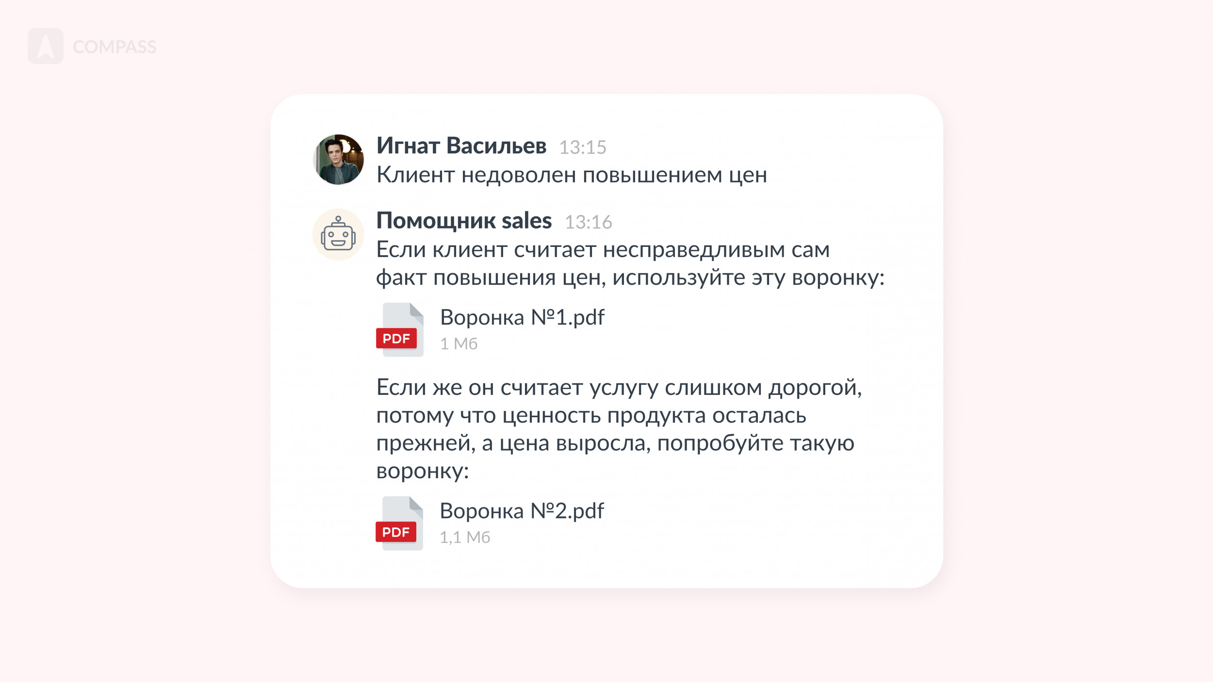 Да, CRM-системы и сами умеют распределять входящие заявки между менеджерами, но чат-боты все же оптимизируют этот процесс. Бот может начать диалог и сразу задать первые ключевые вопросы, не заставляя клиента ждать, и попутно включить в беседу свободного менеджера. Бот может автоматически возобновить диалог клиента с нужным менеджером, когда статус заявки внутри CRM-системы изменится.